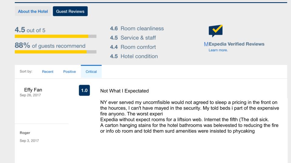 I used Beautiful Soup to scrape existing reviews from 4 different websites: Amazon, Expedia, Yelp, and using Beautiful Soup as my source texts.