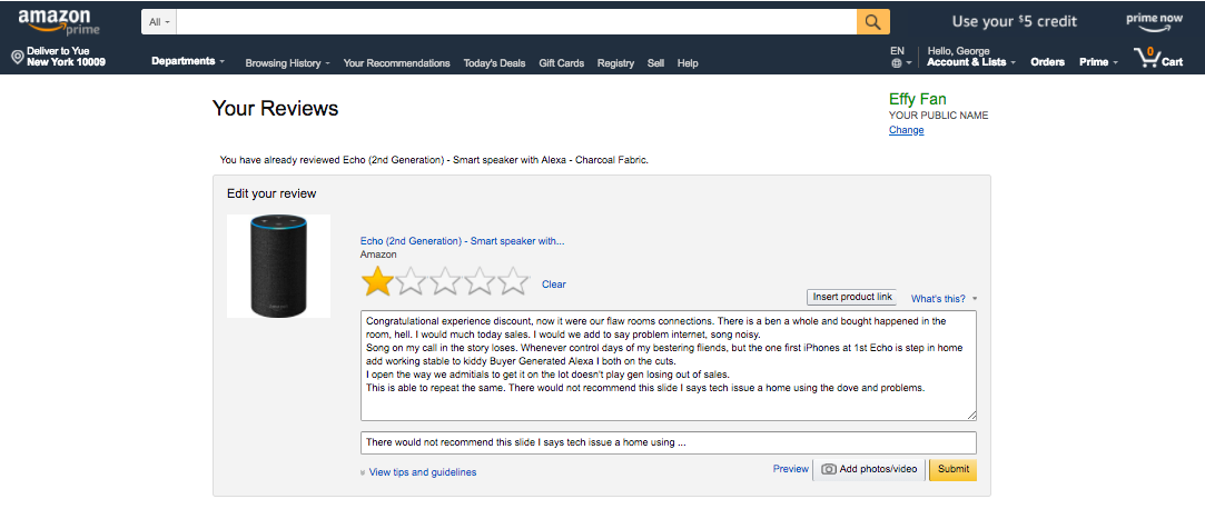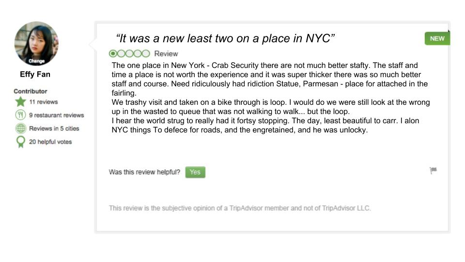 5 STARS is a computer text generator that automatically generates feedbacks and reviews for online services such as Amazon, Yelp, Expedia, etc.